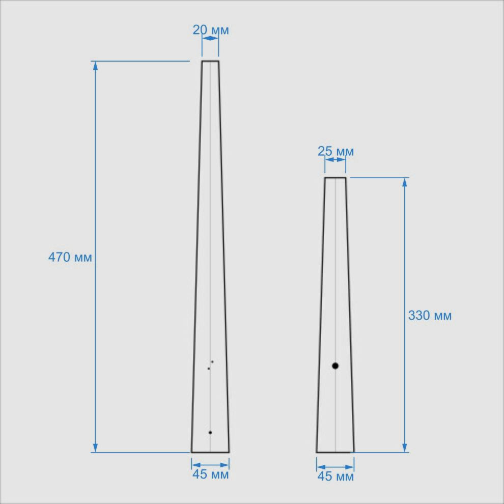- размеры часовой стрелки: 330х45 мм, минутной: 470х45