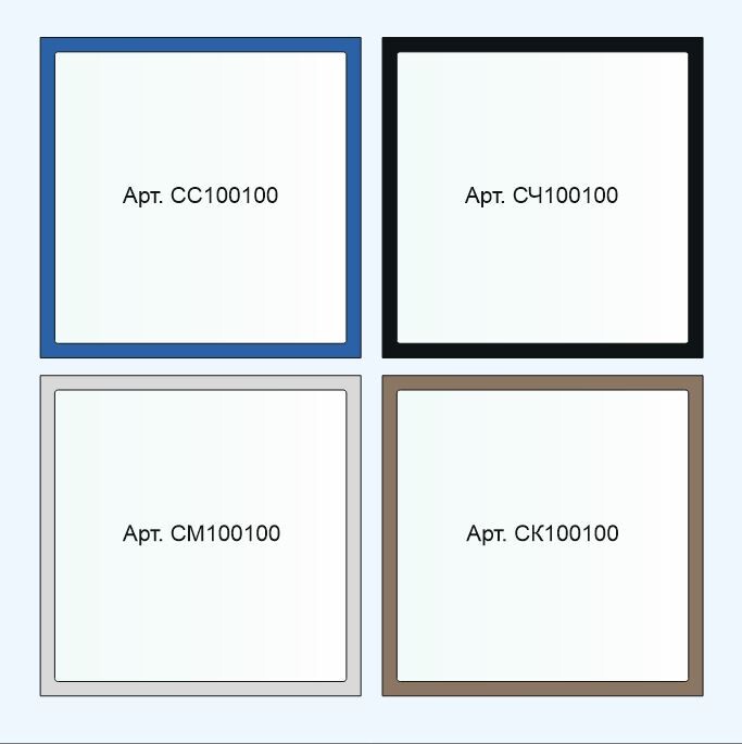 Выпускается с обрамлением одного из четырёх базовых цветов: синий, черный, серый, коричневый. Возможно изготовление в соответствии с вашими требованиями по предварительному согласованию.
