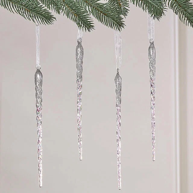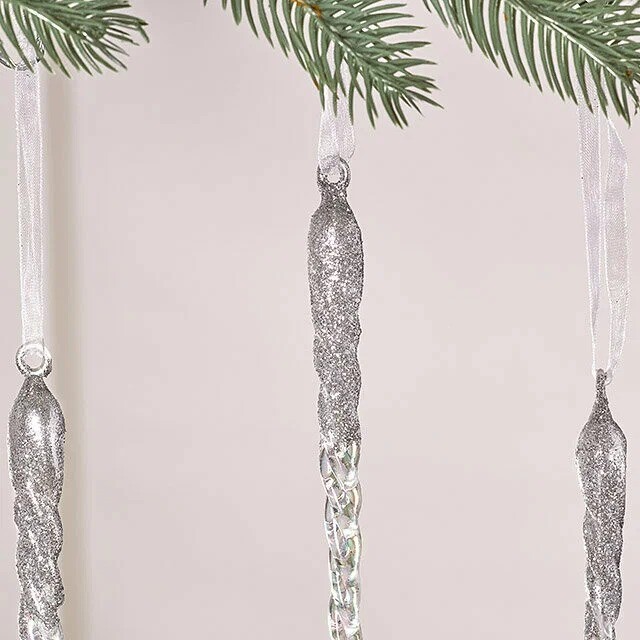Опустите на свою ёлку сверкающую "Серебряную Нить"! Эта изящная сосулька высотой 28 см словно соткана из морозного воздуха и украшена искрящейся серебристой посыпкой. Она добавит нотку волшебства и зимнего блеска в ваш праздничный декор.